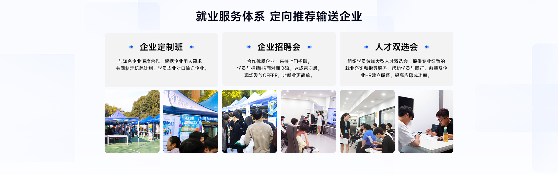 我們面向全國招生,為 18 - 34 歲人群提供計算機IT技能培訓和系統的就業服務,學校采用小班面授,線下實戰教學,打造產教融合創新實訓基地,引入真實企業級運營項目,采用鴻蒙場景化實訓,擁有先進的教學設備及專業齊全的實訓室,為學員營造了良好的學習環境。